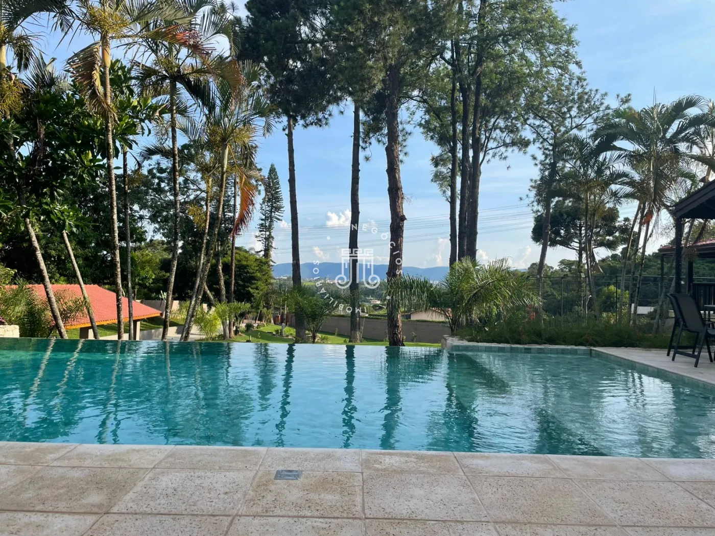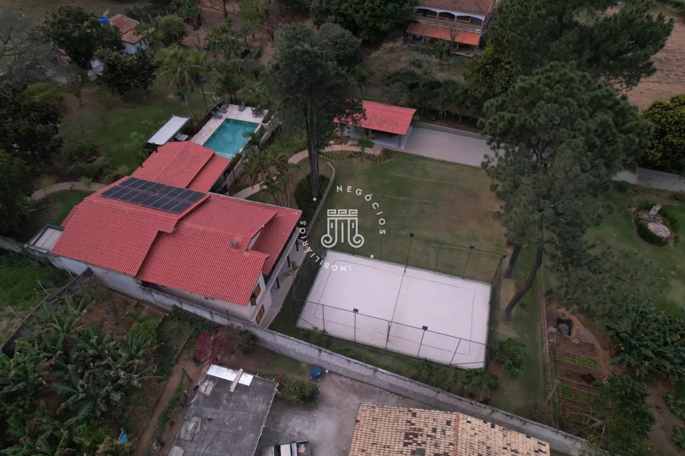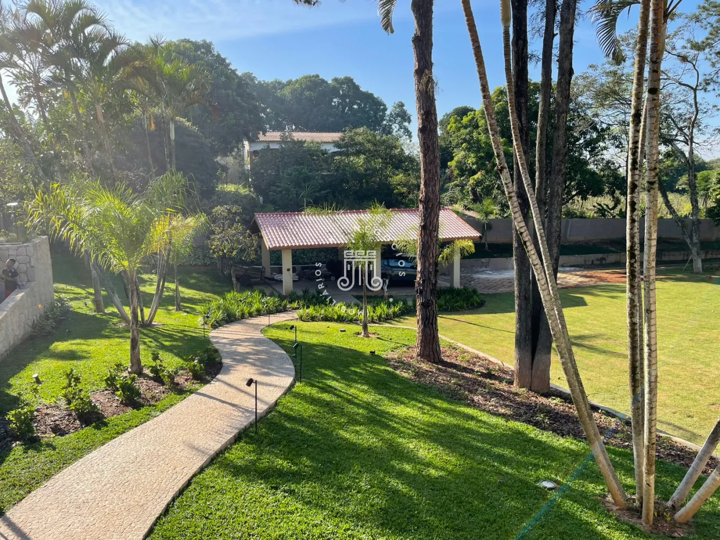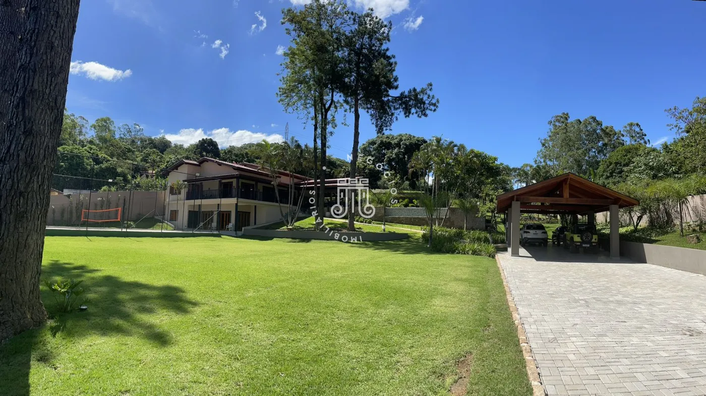 Chácara a venda no Bairro Traviu com terreno de 5.000m² e 490m² área construída, ótima topografia, conceito aberto, pé direito duplo, com sala de estar com lareira, sala de jantar, cozinha com ilha, portas balcão com varanda, lavabo, 4 suítes com pé direito duplo, ar condicionado, no mesmo piso, e 2 no piso de baixo, salão de jogos, lavabo, com frente para quadra de Beach tenis, área gourmet completa com churrasqueira, forno de pizza, fogão a lenha, piscina com borda infinita com aquecimento (trocador de calor) e hidromassagem, deck com pergolado, vista para Serra do Japi, brinquedoteca, playground, poço artesiano, aquecimento solar com 16 placas, sistema automatizado de irrigação, portão automático, sistema de alarme verisure, casa de caseiro, pomar com várias arvores frutíferas, horta, canil, paisagismo, 4 vagas cobertas, 300 metro do asfalto.