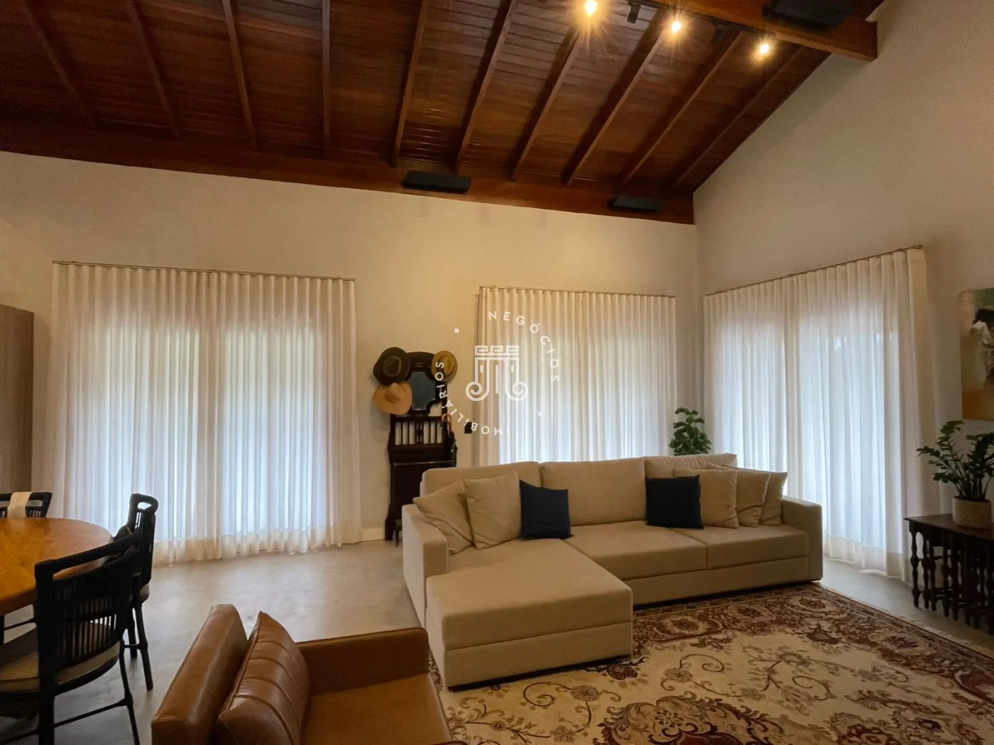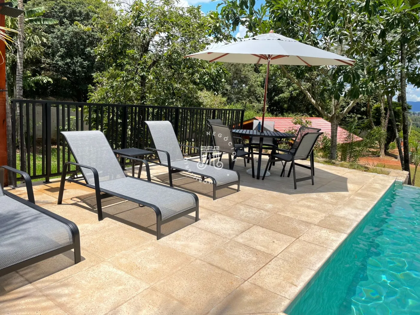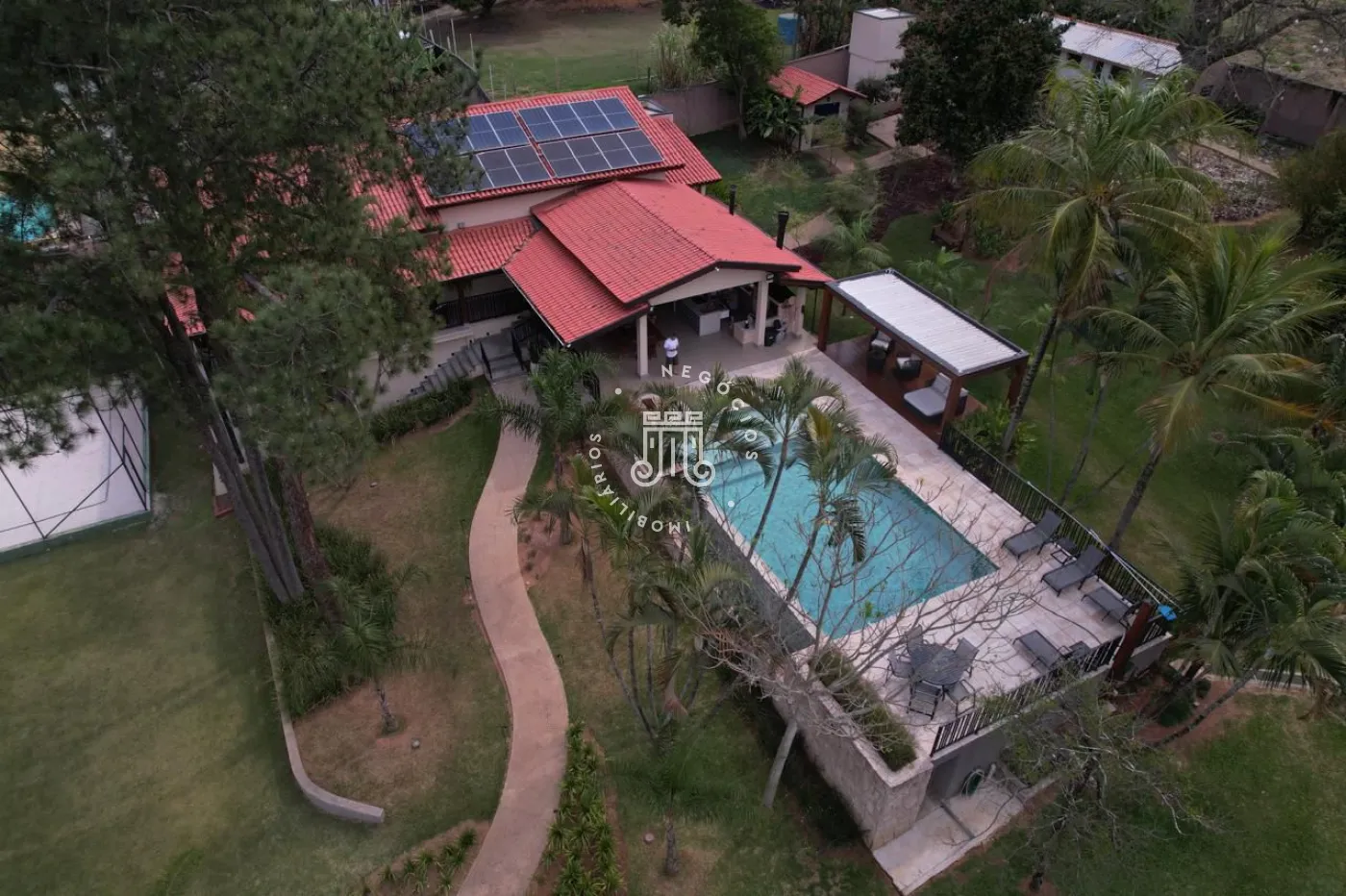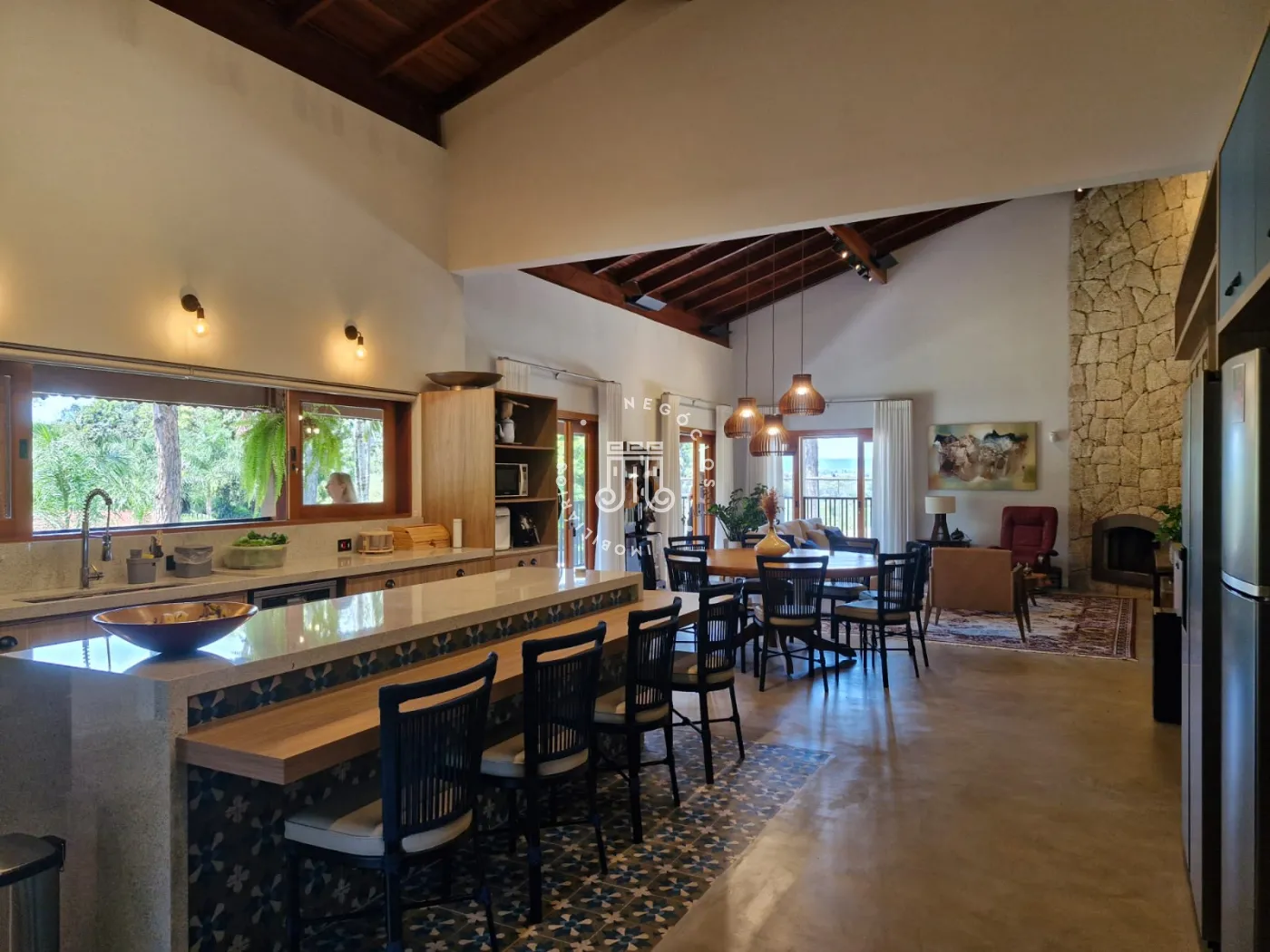Chácara a venda no Bairro Traviu com terreno de 5.000m² e 490m² área construída, ótima topografia, conceito aberto, pé direito duplo, com sala de estar com lareira, sala de jantar, cozinha com ilha, portas balcão com varanda, lavabo, 4 suítes com pé direito duplo, ar condicionado, no mesmo piso, e 2 no piso de baixo, salão de jogos, lavabo, com frente para quadra de Beach tenis, área gourmet completa com churrasqueira, forno de pizza, fogão a lenha, piscina com borda infinita com aquecimento (trocador de calor) e hidromassagem, deck com pergolado, vista para Serra do Japi, brinquedoteca, playground, poço artesiano, aquecimento solar com 16 placas, sistema automatizado de irrigação, portão automático, sistema de alarme verisure, casa de caseiro, pomar com várias arvores frutíferas, horta, canil, paisagismo, 4 vagas cobertas, 300 metro do asfalto.