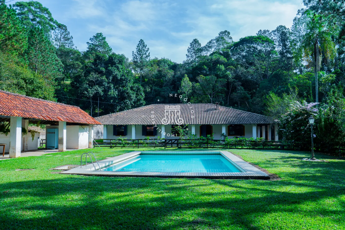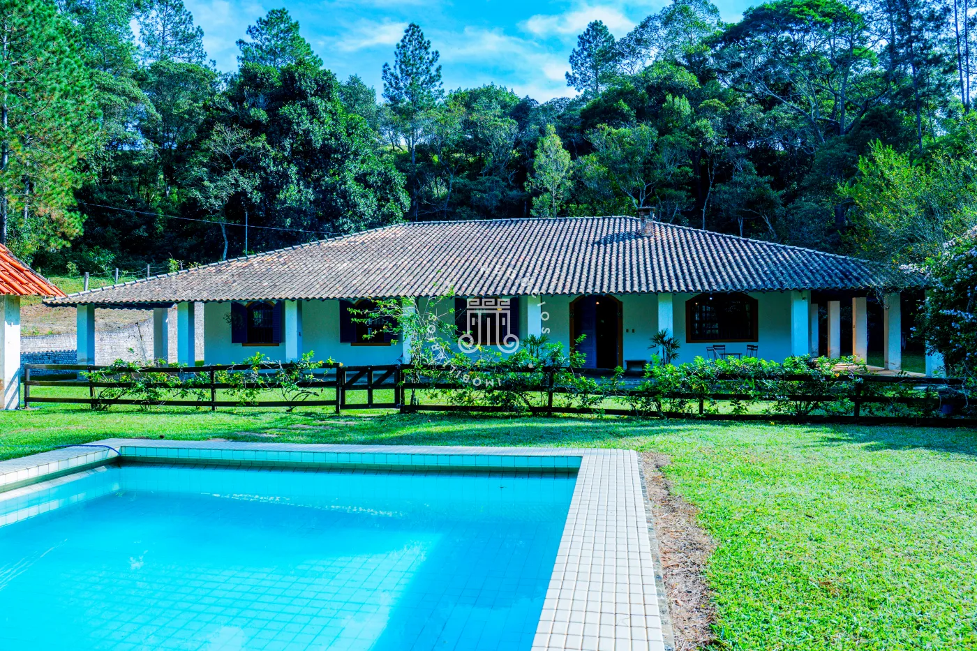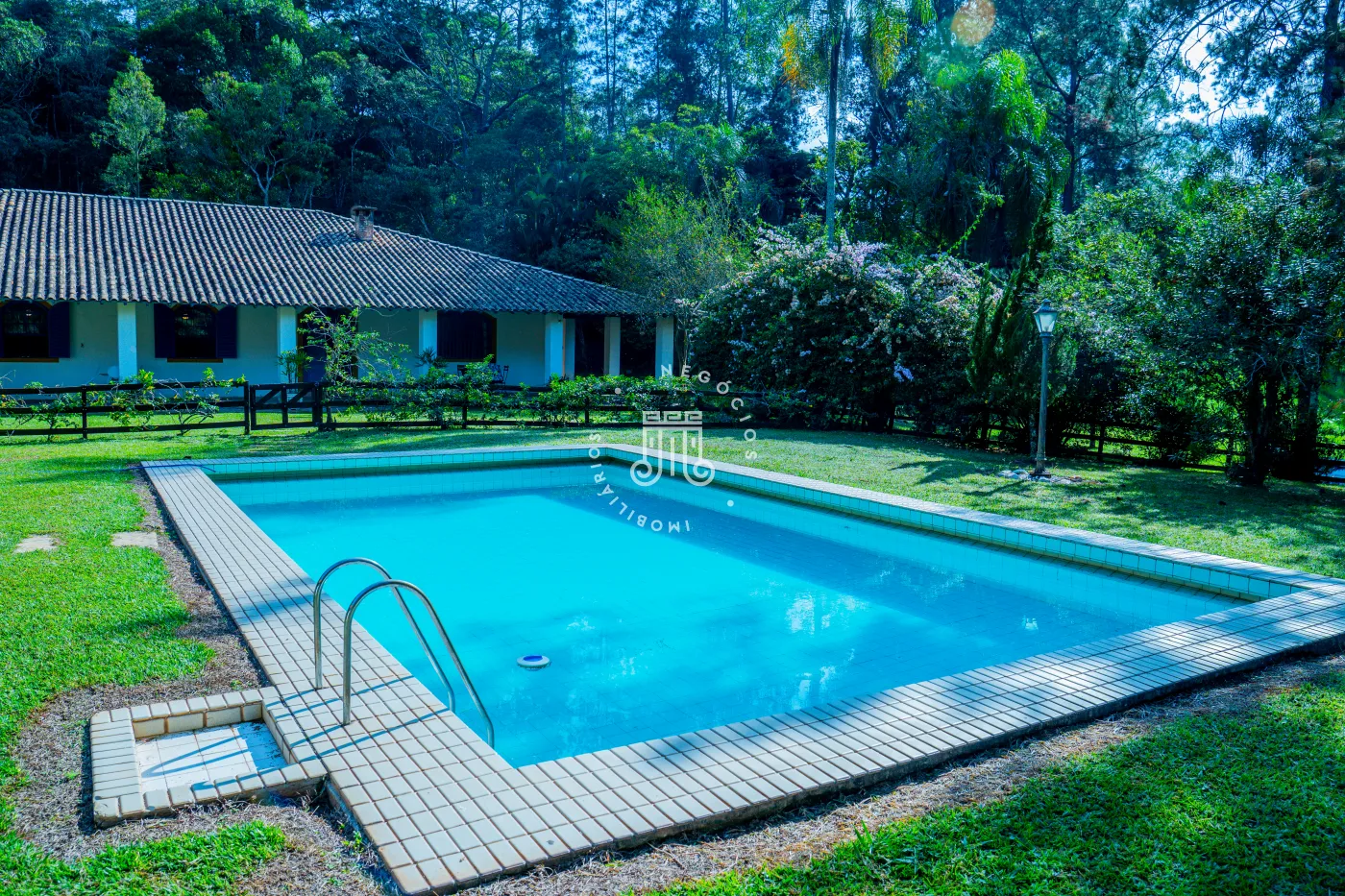 Casa com 5 quartos, 3 banheiros (inclui edícula externa), piscina, churrasqueira, lareira, casa de funcionário e uma extensa área verde para ser utilizada como quiser (lazer, plantação, criação animais pois tem estábulo)