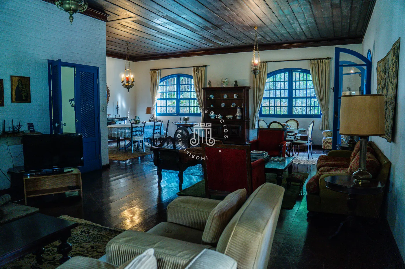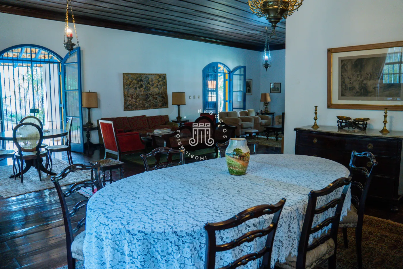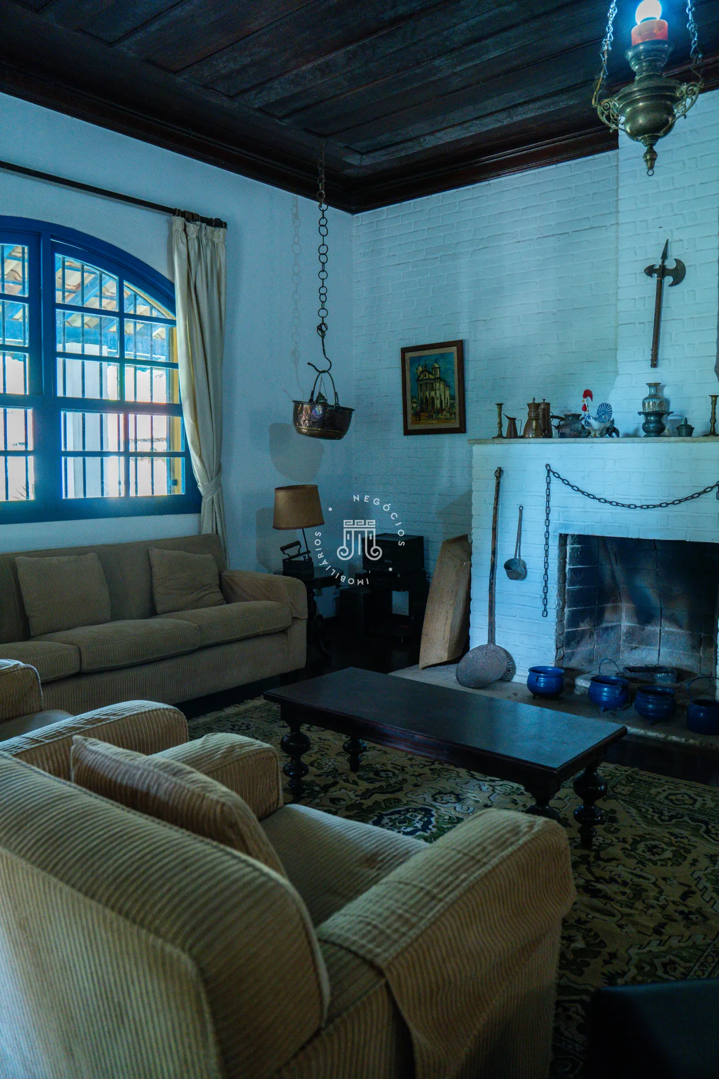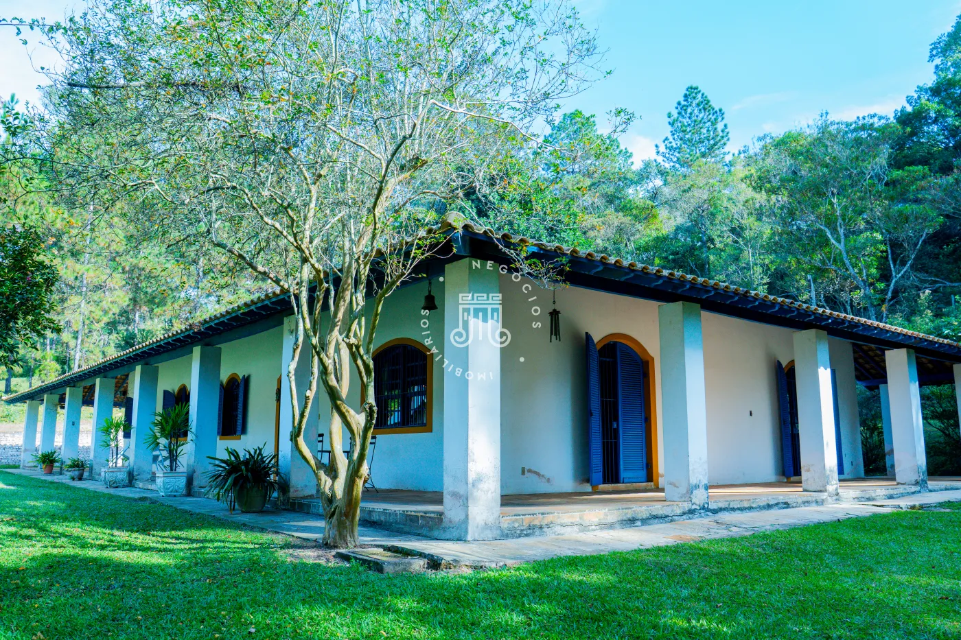 Casa com 5 quartos, 3 banheiros (inclui edícula externa), piscina, churrasqueira, lareira, casa de funcionário e uma extensa área verde para ser utilizada como quiser (lazer, plantação, criação animais pois tem estábulo)