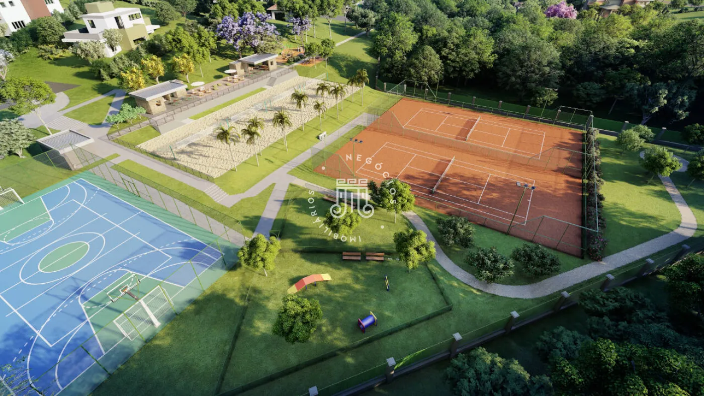 O condomínio possui 126 lotes a partir de 1.000 m² com área total de 315.242 m2 divididos em 92.594,94 m² de área verde com 2 núcleos residenciais e conta com 3 complexos de lazer incríveis: piscina com raia semiolímpica coberta, academia, cinema ao ar livre, quadra de beach tennis, quadra poliesportiva, quiosques churrasqueiras, pet pak, fogo de chão e muito mais.