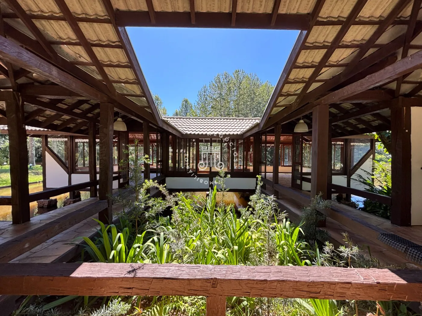 O empreendimento segue o modelo de moradia `no fence`, com casas sem muros em lotes amplos. A infraestrutura inclui portaria 24 horas, vigilância, rondas, campo de futebol, lagos, trilha ecológica, sauna com ducha natural, piscina, quadra poliesportiva, churrasqueira, vestiários, playground e quadra de tênis.