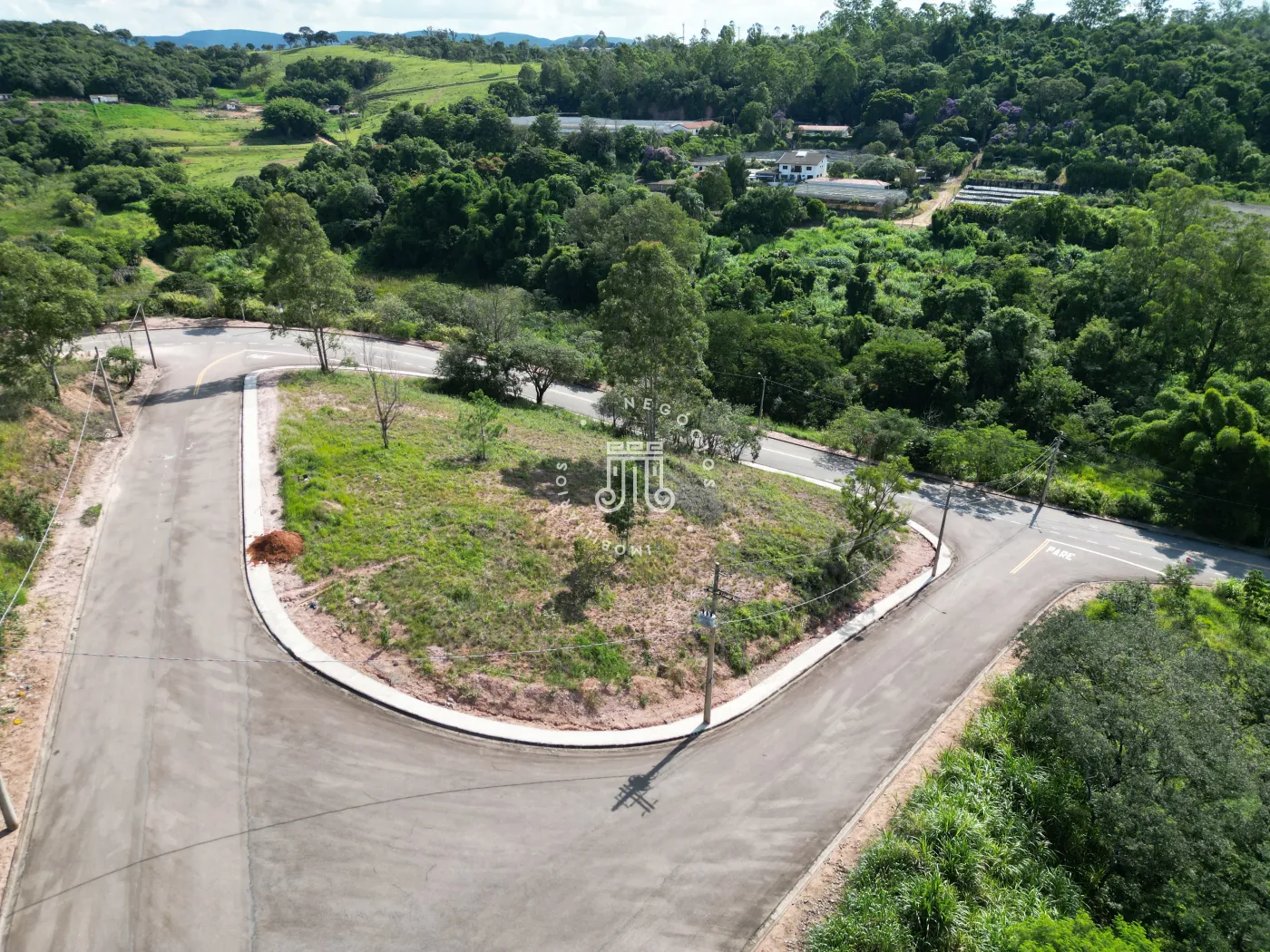 O lote possui 1.402,67m², com topografia variada, acesso pela rua de baixo e de cima, localizado em uma região com infraestrutura para água, energia elétrica e vias de acesso.