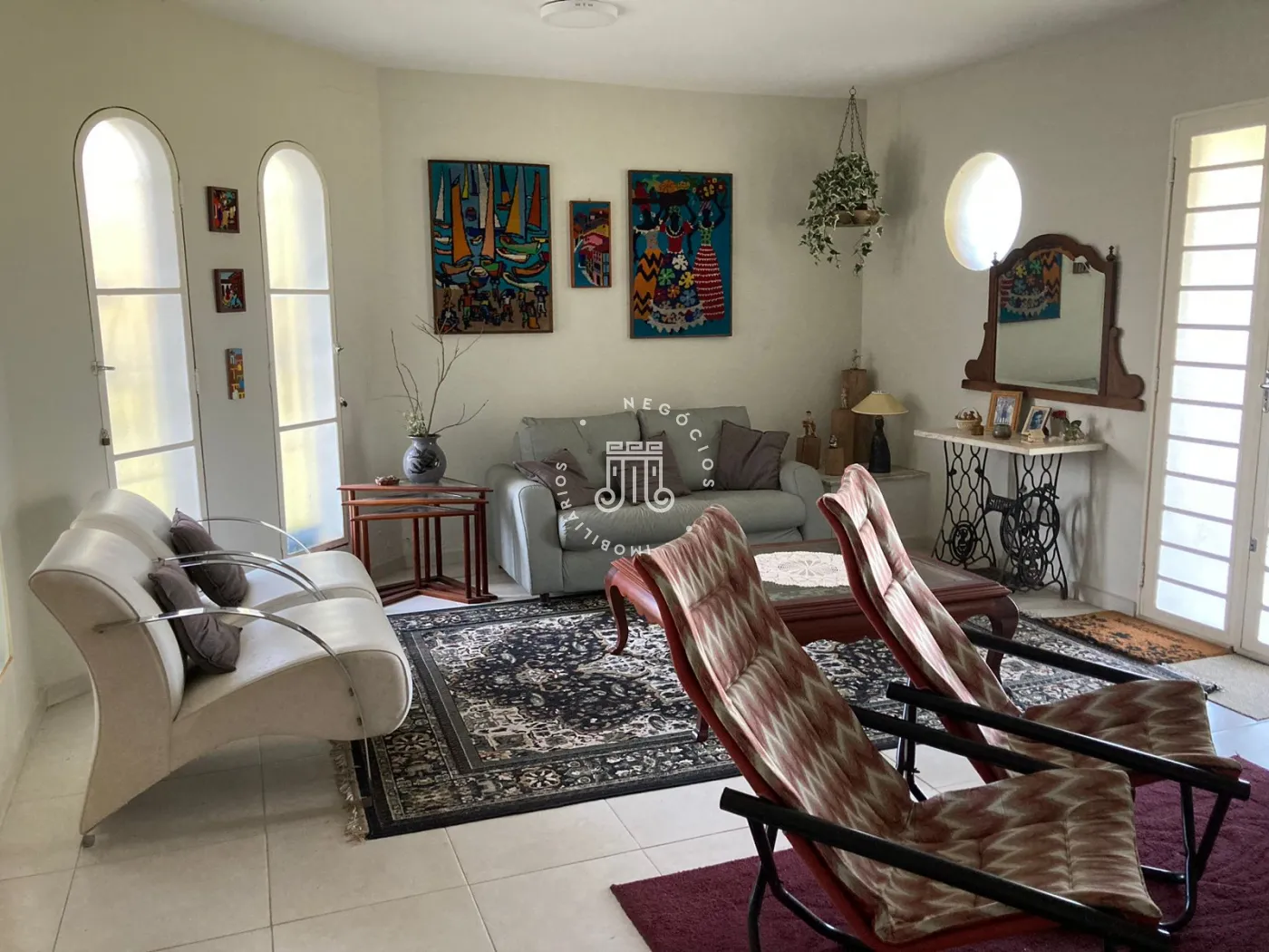 A casa (151,88 m²) na parte central do terreno - todo gramado - tem jardim com palmeiras imperiais, cerejeira (sakura) flores e no pomar, árvores frutíferas; alambrados e cerca viva.