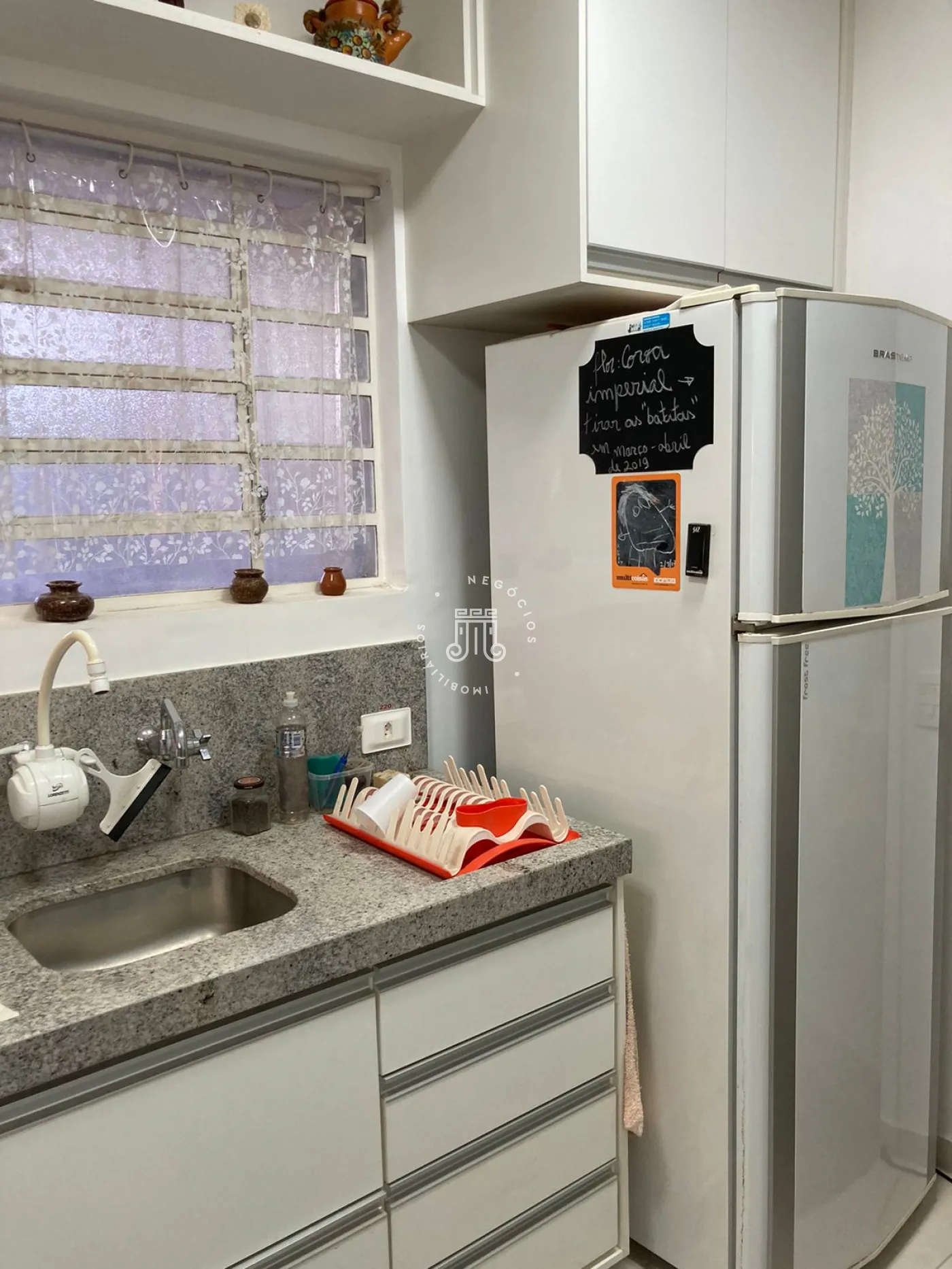 A garagem coberta abriga 2 carros; há 2 varandas, ampla sala de estar (com lareira); sala de jantar, cozinha com armários planejados; uma suíte mais dois quartos, banheiro, hall íntimo, ampla lavanderia, quarto e banheiro de serviço.