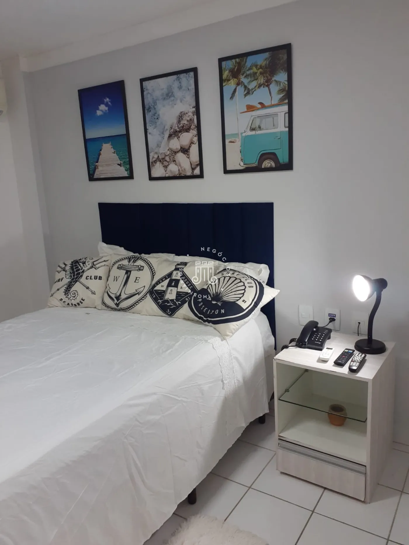 Apartamento tipo Studio, com moveis planejados, TV de led com canais digital, wi-fi, cama de casal, 02 cadeiras, micro-ondas, ar condicionado, secador de cabelo, todo decorado, de frente com a praia.