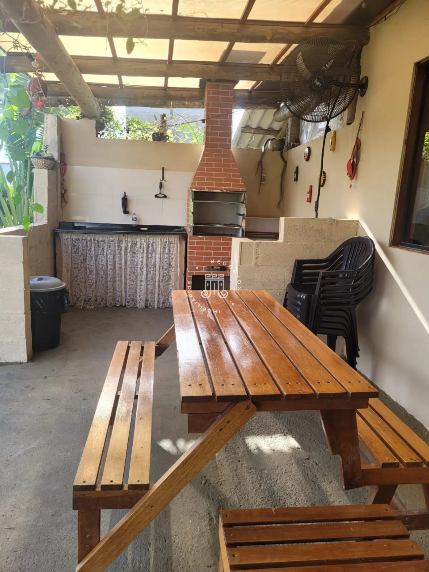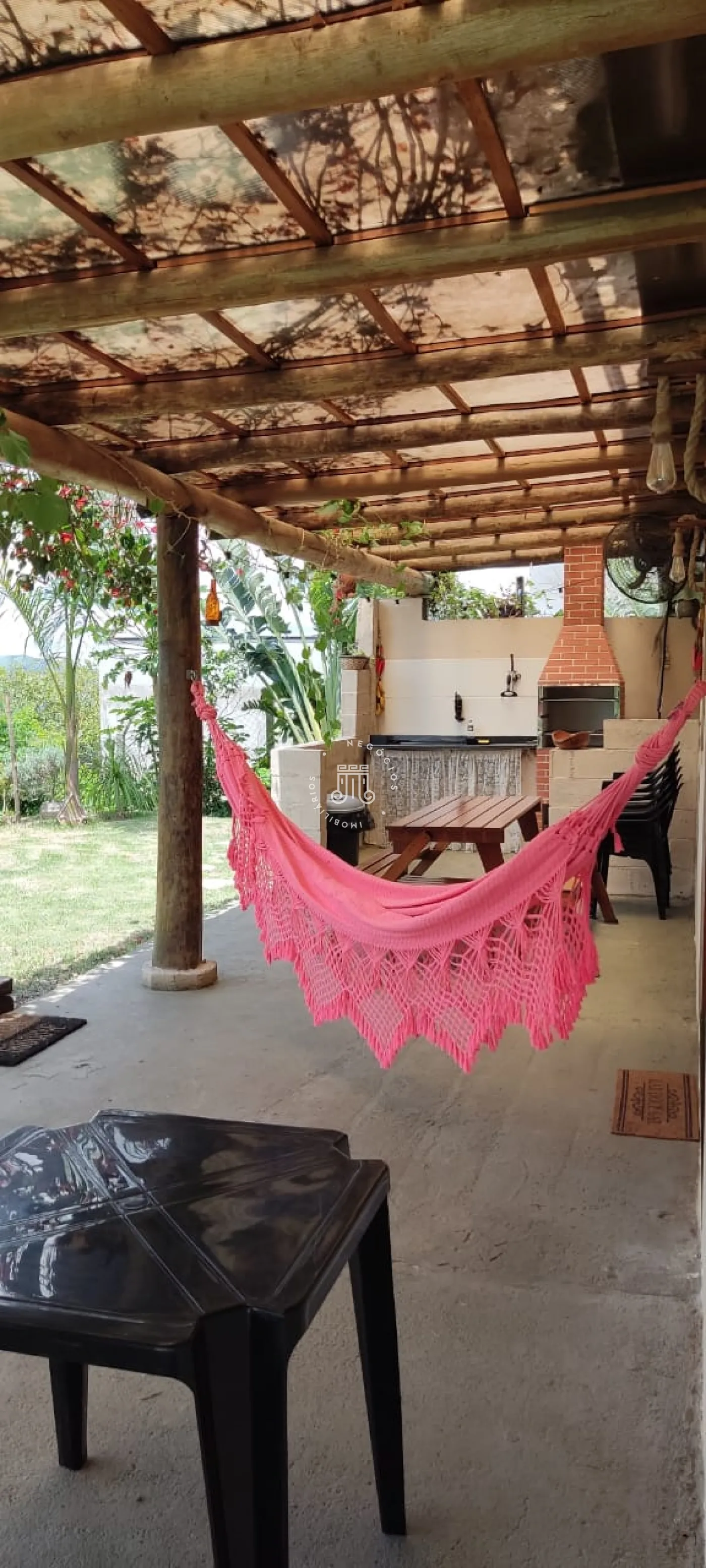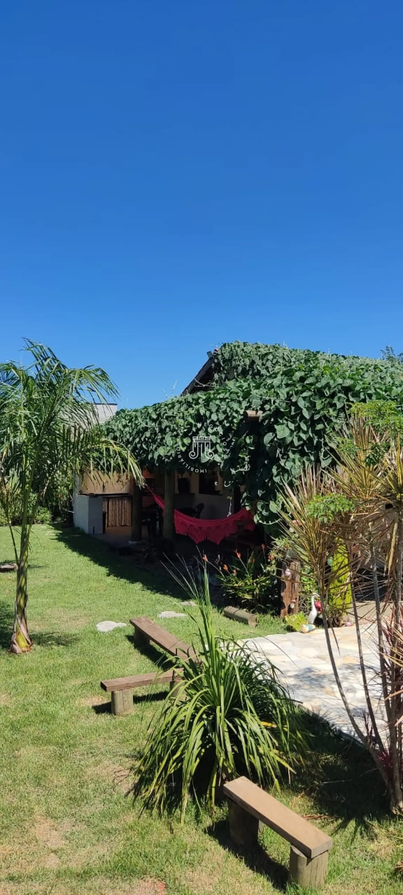 Totalmente mobiliada com 1.700m² de terreno e 240m² de área construída, distribuída em 3 dormitórios sendo 1 suíte com closet, 1 dormitório fica no mezanino, (falta colocar piso em 1 dormitório), sala de estar, sala de jantar e cozinha integrados, escritório, varanda, banheiro social, lavanderia, quarto de despejo, área gourmet com churrasqueira e piscina, pomar, varias vagas.