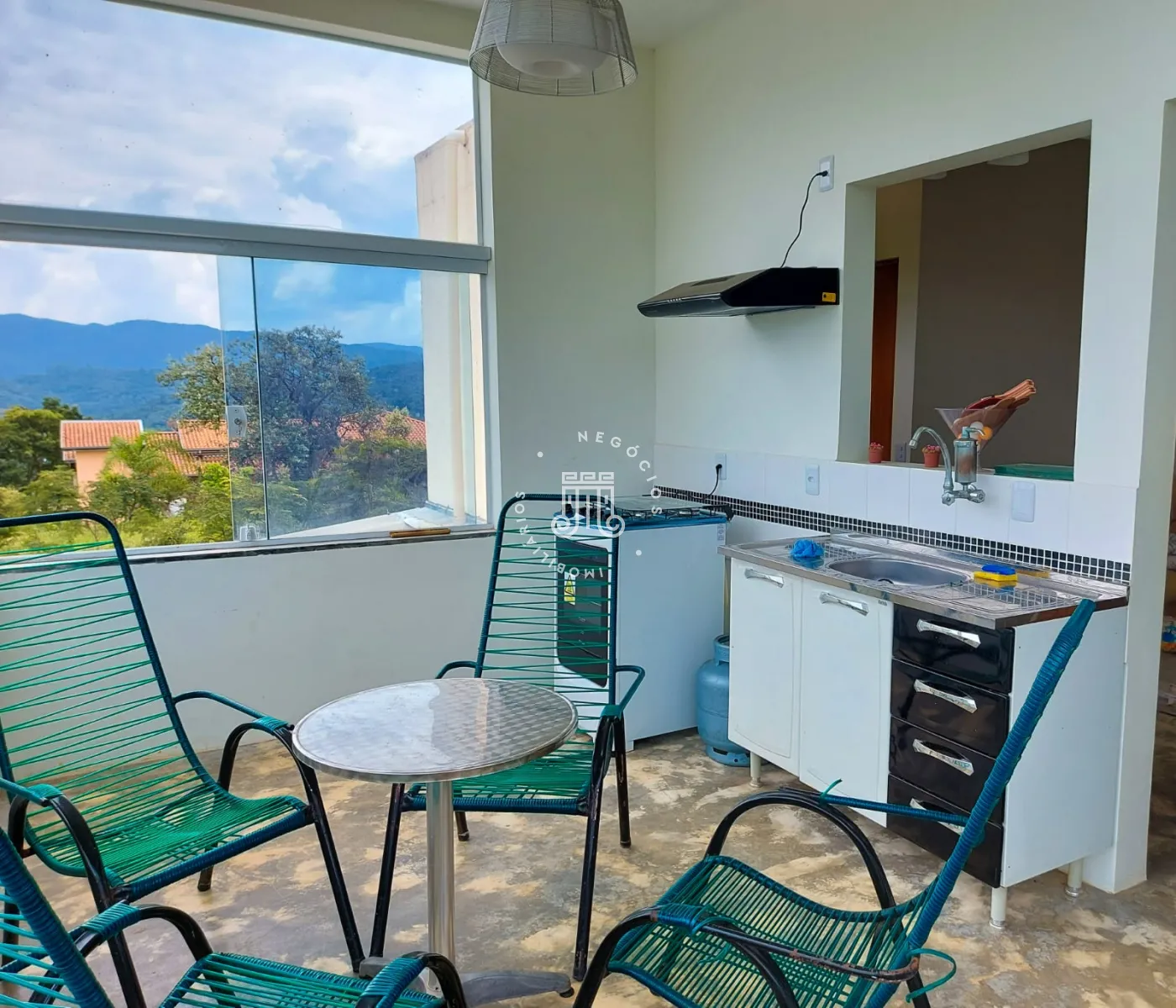O imóvel conta com dois espaços independentes: na parte inferior, área gourmet, cozinha americana, sala, lavabo e uma suíte; na parte superior, cozinha, dormitório com ar-condicionado, sala/quarto e banheiro.