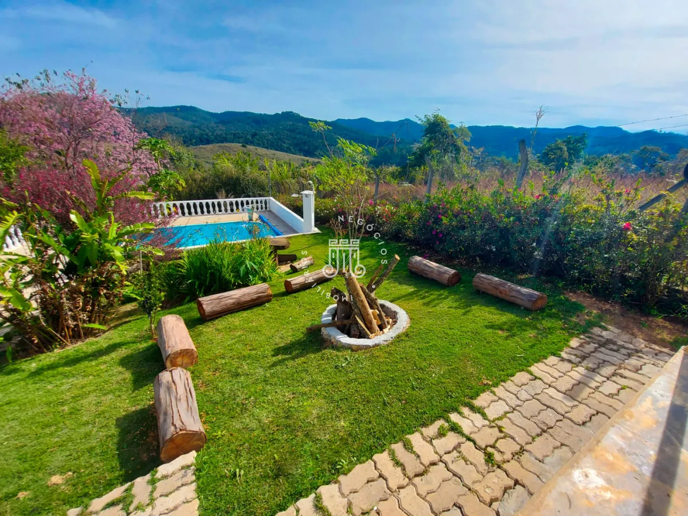A área externa é um grande destaque, com piscina voltada para a serra, espaço kids, amplo jardim com árvores frutíferas, local para fogueira e vagas descobertas para vários veículos. Conta ainda com internet, sendo uma excelente opção também para home office.