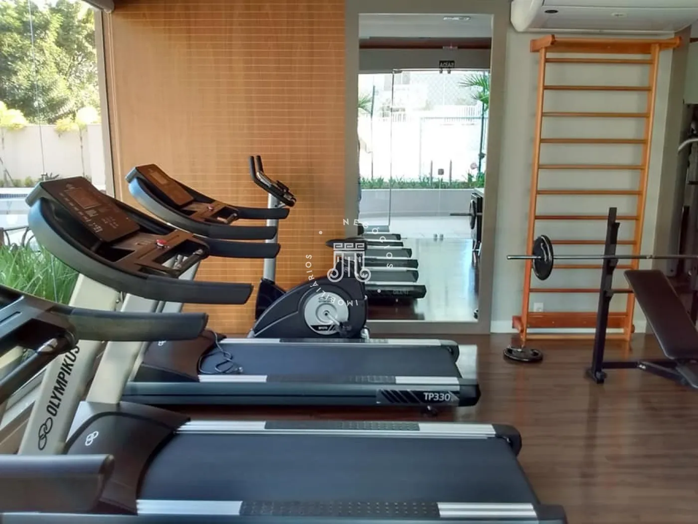 A infraestrutura do condomínio inclui piscina (adulto e infantil), academia, salão de festas, salão de jogos, sauna, spa, brinquedoteca, quadra poliesportiva, playground, espaço gourmet com churrasqueira, além de portaria 24 horas e estacionamento para visitantes