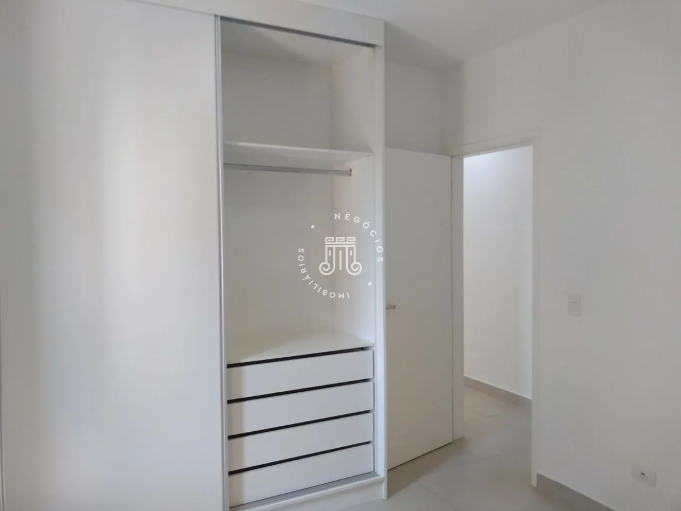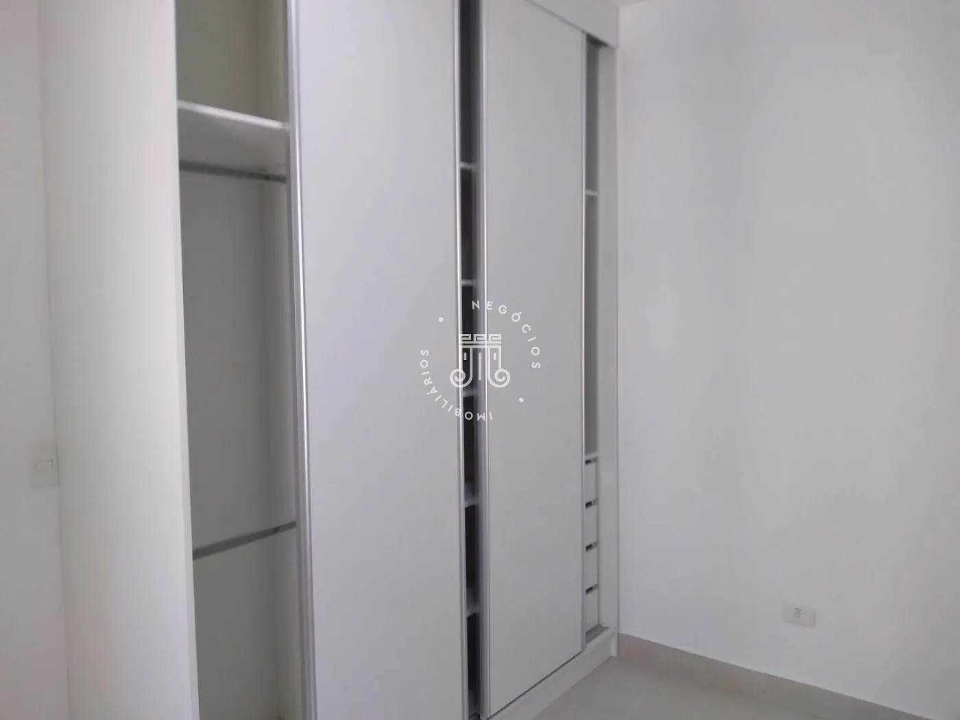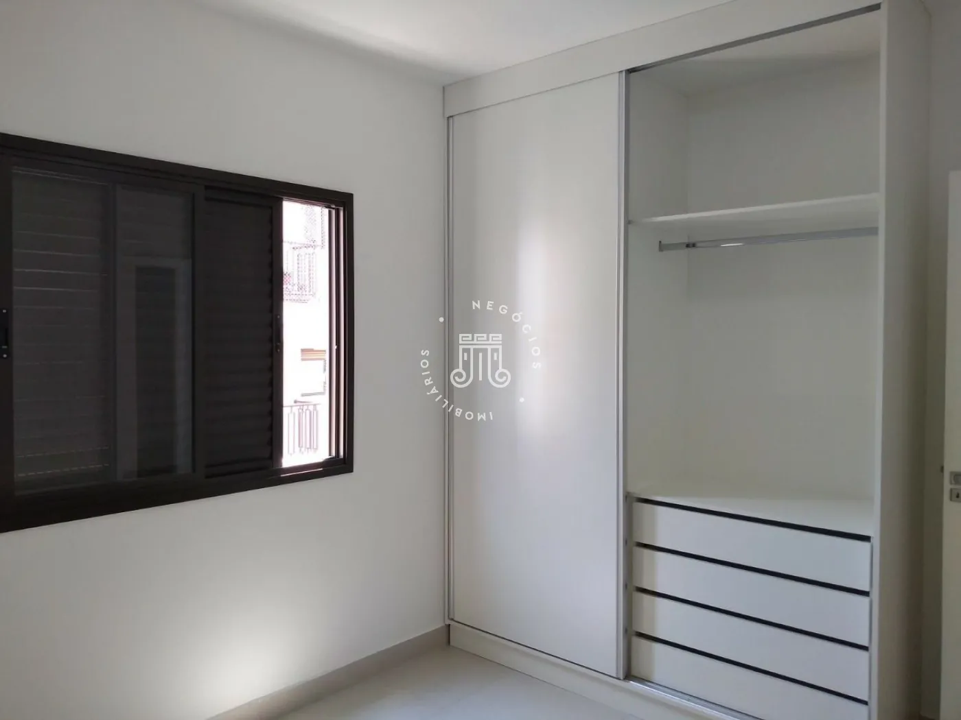 Este imóvel possui uma área de sessenta e quatro metros quadrados. Conta com três quartos, sendo um deles uma suíte, e dois banheiros. As vagas de garagem são duas, localizadas no segundo andar, em um local privilegiado com vista para o boulevard. O imóvel é equipado com armários em diversos ambientes.
